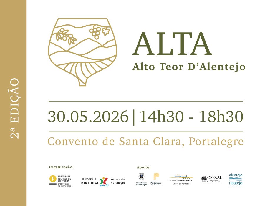 O Politécnico de Portalegre promove, no próximo 30 de maio de 2026, a 2.ª edição do evento ALTA – Alto Teor d’Alentejo, dedicada à valorização do enoturismo e do olivoturismo da região.